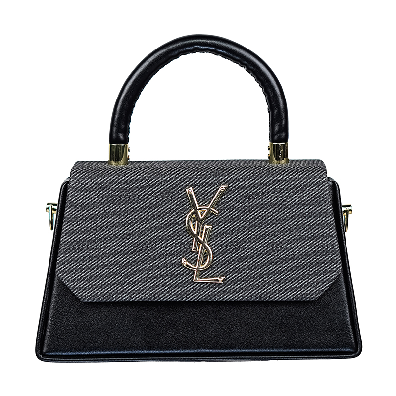 Chic Black & Grey Top Handle Bag with Gold-Tone Logo
